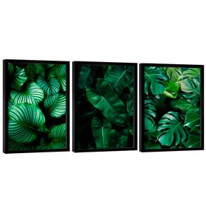 Quadro Decorativo Trio Folhas Verdes Moldura Preta - 60x40cm -