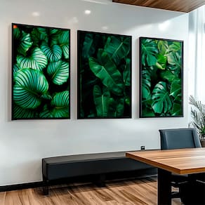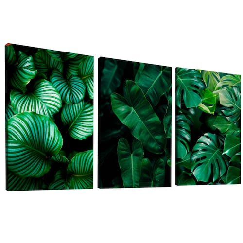 Quadro Decorativo Trio Folhas Verdes Borda Infinita - 118x78cm -