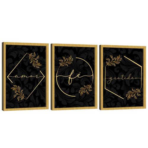 Quadro Decorativo Trio Gratidão, Fé e Amor Moldura Dourada - 118x78cm -