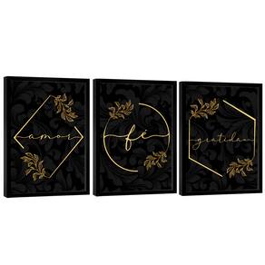 Quadro Decorativo Trio Gratidão, Fé e Amor Borda Infinita - 60x40cm -