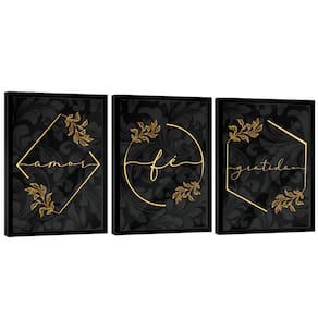 Quadro Decorativo Trio Gratidão, Fé e Amor Moldura Dourada e Vidro - 84x54cm -