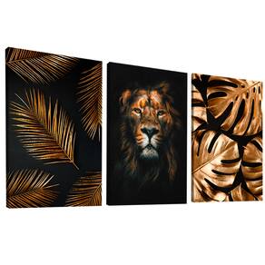 Quadro Decorativo Trio Leão e Folhagem Moldura Preta - 60x40cm -