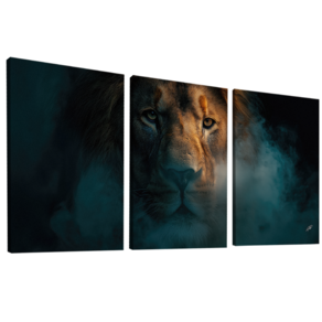 Quadro Decorativo Trio Leão na Fumaça Variação Borda Infinita - 118x78cm -