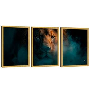Quadro Decorativo Trio Leão na Fumaça Variação Moldura Dourada - 60x40cm -