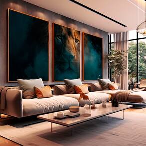 Quadro Decorativo Trio Leão na Fumaça Variação Moldura Dourada - 150x100cm -