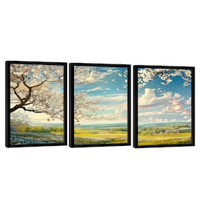 Quadro Decorativo Trio Paisagem Branca 3 Peças Moldura Branca - 60x40cm -