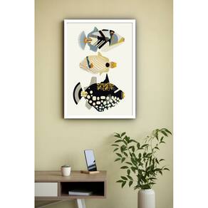 Quadro Decorativo Trio Peixes Abstrato - 70x50cm - Cor: Moldura Preta