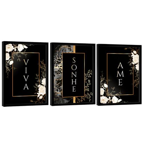 Quadro Decorativo Trio Viva, Sonhe e Ame Moldura Preta - 60x40cm -