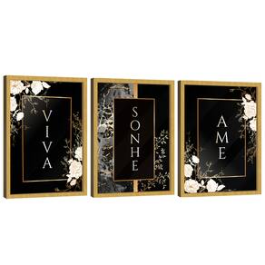 Quadro Decorativo Trio Viva, Sonhe e Ame Moldura Preta - 84x54cm -
