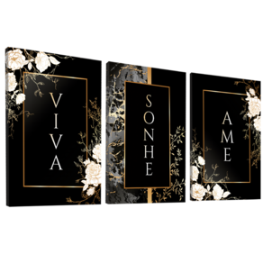 Quadro Decorativo Trio Viva, Sonhe e Ame Borda Infinita - 180x105cm -