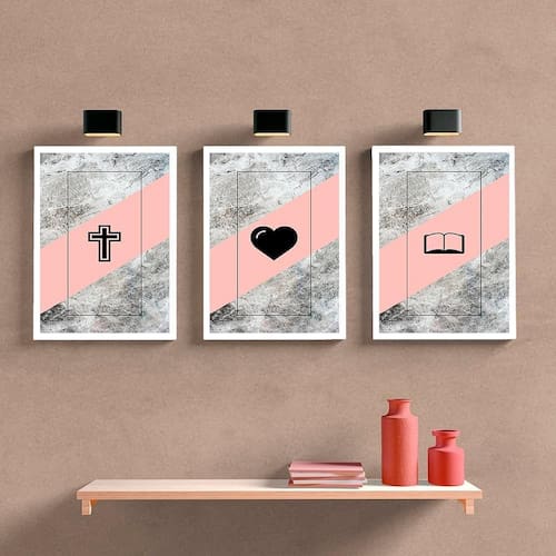 Descrição do produto: Transforme seu ambiente com este inspirador quadro decorativo triplo, composto por três peças que simbolizam fé, amor e sabedoria. Com uma moldura elegante e vidro protetor, cada peça de 33x25 cm (tamanho A4) é perfeita para trazer uma mensagem de esperança e espiritualidade para sua casa, escritório ou espaço de meditação. Benefícios: Durabilidade: Moldura resistente e vidro que protege contra poeira e danos Estilo: Adiciona um toque de espiritualidade e beleza ao seu espaço Facilidade: Pronto para pendurar, sem necessidade de montagem Características:03 Peça(s)Com vidro.Moldura feita de madeira maciça disponíveis nas cores:Preta, Branca, Rosa e Azul TurquesaImagem A4 de alta qualidade protegida contra umidade.Dimensões por peça:Moldura: 25 cm L. 33,7 cm AlturaImagem: 21 cm L. 30 cm AlturaVidro: 0,3 mm Espessura.