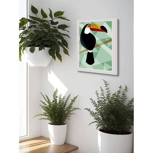 Quadro Decorativo Tucano Abstrato Sala Quarto + Vidro 33x25 - Cor: Branco