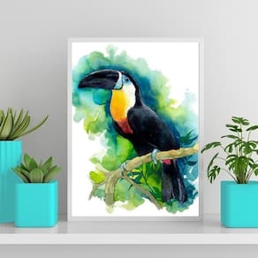 Quadro decorativo tucano aquarela 24x18cm Moldura: madeira branca Informações do produto tire todas as suas dúvidas no descritivo abaixo: decoração para quarto, sala, cozinha, escritório, área gourmet e muito mais. Chega de paredes vazias medidas - cada peça tem 24x18cm a5 . Material do papel - papel fotográfico brilhante de altíssima resolução acabamento - todos os quadros são acompanhados de uma película de acetato para proteção da imagem. - os quadros são embalados de forma segura com plástico bolha com camada dupla de acordo com o tamanho dos quadros. Garantia - garantia de 3 meses. Meu quadro chegou. Como posso fixá-lo Você precisa apenas de um martelo e um prego, pois os quadros já vão acompanhados de penduradores. Esta é a forma mais indicada. Caso prefira, você pode utilizar uma fita dupla face neste caso, sugerimos de alta qualidade para evitar que descole e seu quadro caia . Como posso limpar meu quadro A limpeza é feita como um móvel comum da sua casa. Apenas um pano seco ou espanador são suficientes para tal