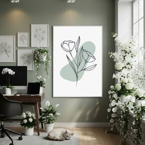 Quadro Decorativo Tulipas Minimalistas 70x50cm Mold Branca