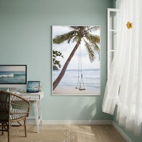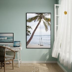 Quadro Decorativo Um Balanço Na Palmeira-70x50cm - Cor: Moldura Preta