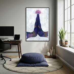 Quadro Decorativo Um Gesto da Yoga - 70x50cm - Cor: Moldura Branca