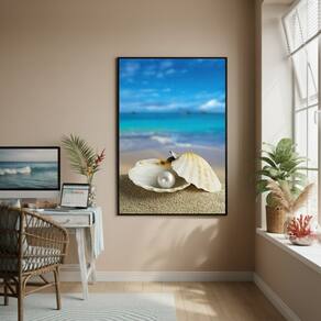 Quadro Decorativo Uma Concha Com Pérola-70x50cm - Cor: Moldura Preta