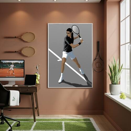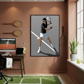 Quadro Decorativo Uma Jogadora De Tênis-70x50cm Mold Branca