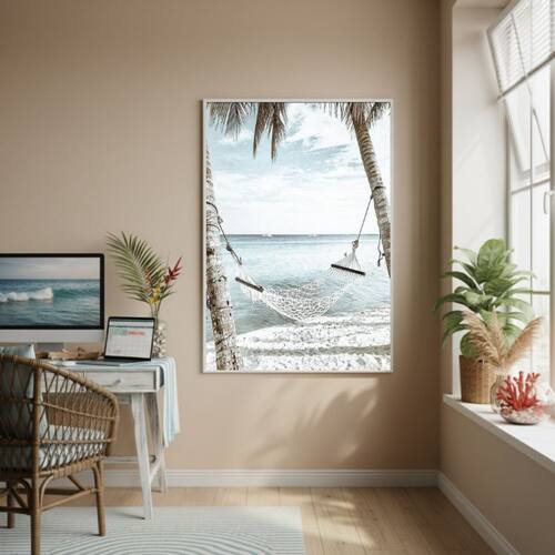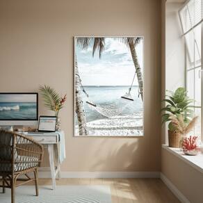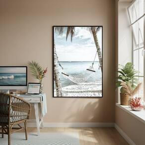 Quadro Decorativo Uma Rede Na Praia-70x50cm - Cor: Moldura Preta