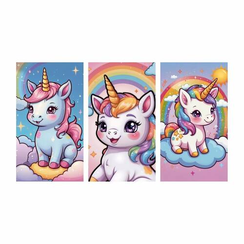 Quadro Decorativo Unicórnio Arco-Íris Tons Pasteis Cartoon Desenho: Unicórnio Transforme o ambiente da sua casa ou escritório com nosso Quadro Triplo Decorativo de alta qualidade. Este conjunto impressionante é produzido utilizando a mais avançada tecnologia de impressão e corte a laser, garantindo detalhes nítidos e precisos que capturam a essência de qualquer imagem ou design. Características: Impressão de Alta Qualidade: Nossos quadros apresentam uma impressão de alta definição que realça cores vibrantes e detalhes minuciosos, proporcionando uma estética visualmente deslumbrante. Corte a Laser: O corte a laser oferece um acabamento perfeito e preciso, destacando contornos e formas de maneira impecável. Esta técnica também assegura bordas limpas e uniformes, valorizando ainda mais a elegância do quadro. Material Durável: Produzidos em chapa de MDF de 3 mm, os quadros são leves, resistentes e duráveis, garantindo uma longa vida útil e fácil manuseio. O MDF é um material sustentável que proporciona uma superfície lisa e uniforme para a impressão. Design Versátil: Composto por três partes que podem ser dispostas de diversas maneiras, este quadro triplo se adapta a diferentes estilos de decoração, seja moderno, clássico, minimalista ou contemporâneo. Fácil Instalação: Cada quadro vem com fita dupla face prontos para utilizar, permitindo uma instalação rápida e sem complicações. Adicione um toque de sofisticação e personalidade ao seu espaço com o nosso Quadro Triplo Decorativo. Ideal para salas de estar, quartos, escritórios e qualquer ambiente que necessite de um toque artístico e elegante.