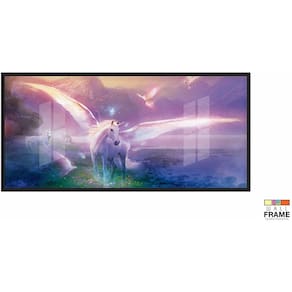 Quadro Decorativo Unicórnio Asas 130x60 Moldura Preta 2x2