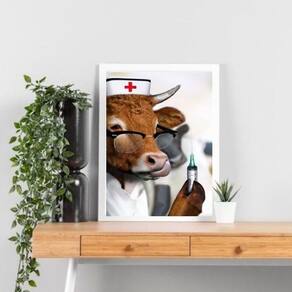 Quadro decorativo vaca veterinária 24x18cm - com vidro Cor: moldura branca Informações do produto tire todas as suas dúvidas no descritivo abaixo: decoração para quarto, sala, cozinha, escritório, área gourmet e muito mais. Chega de paredes vazias medidas - cada peça tem 24x18cm a5 . Material do papel - papel fotográfico brilhante de altíssima resolução acabamento - todos os quadros são acompanhados de vidro para proteção da imagem. - moldura em madeira maciça na cor preta ou branca conforme produto escolhido e pendurador . - os quadros são embalados de forma segura com plástico bolha com camada dupla de acordo com o tamanho dos quadros. Garantia - garantia de 3 meses. Meu quadro chegou. Como posso fixá-lo Você precisa apenas de um martelo e um prego, pois os quadros já vão acompanhados de penduradores. Esta é a forma mais indicada. Como posso limpar meu quadro A limpeza é feita como um móvel comum da sua casa. Apenas um pano seco ou espanador são suficientes para tal