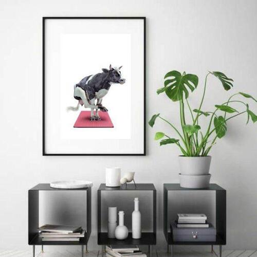 Quadro decorativo vaca yoga - 60x48cm Moldura: madeira branca Informações do produto tire todas as suas dúvidas no descritivo abaixo: decoração para quarto, sala, cozinha, escritório, área gourmet e muito mais. Chega de paredes vazias medidas - cada peça tem 60x48cm . Material do papel - papel fotográfico brilhante de altíssima resolução acabamento - todos os quadros são acompanhados de vidro para proteção da imagem. - moldura em madeira maciça na cor preta ou branca conforme produto escolhido e pendurador. - paspatur branco com 7cm de largura - os quadros são embalados de forma segura com plástico bolha com camada dupla de acordo com o tamanho dos quadros. Garantia - garantia de 3 meses. Meu quadro chegou. Como posso fixá-lo Você precisa apenas de um martelo e um prego, pois os quadros já vão acompanhados de penduradores. Esta é a forma mais indicada. Como posso limpar meu quadro A limpeza é feita como um móvel comum da sua casa. Apenas um pano seco ou espanador são suficientes para tal
