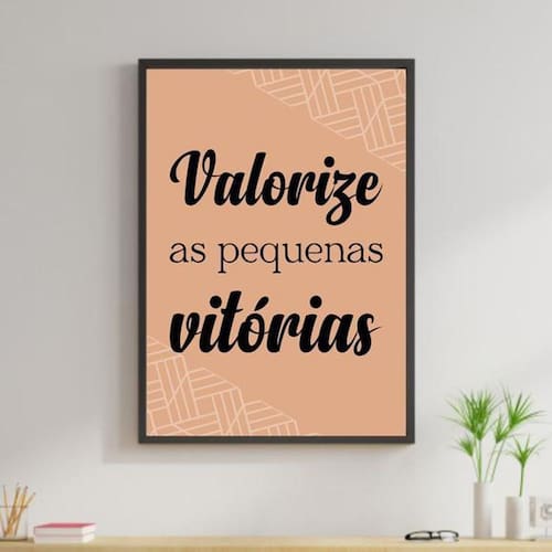 Quadro decorativo valorize as pequenas vitórias 34x23cm - moldura branca Tamanho: a4 20 x 30 Acabamento: película de acetato Moldura: madeira branca Informações do produto Tire todas as suas dúvidas no descritivo abaixo: Decoração para quarto, sala, cozinha, escritório, área gourmet e muito mais. Chega de paredes vazias Medidas - cada peça tem 34x23cm a4 . Material do papel - papel fotográfico brilhante de altíssima resolução Acabamento - todos os quadros são acompanhados de uma película de acetato para proteção da imagem. - moldura em madeira maciça na cor branca e pendurador móvel que pode ser retirado facilmente caso deseje fixar com fita dupla face. - os quadros são embalados de forma segura com plástico bolha com camada dupla de acordo com o tamanho dos quadros. - de 3 meses Meu quadro chegou. Como posso fixá-lo Você precisa apenas de um martelo e um prego, pois os quadros já vão acompanhados de penduradores. Esta é a forma mais indicada. Caso prefira, você pode utilizar uma fita dupla face neste caso, sugerimos de alta qualidade para evitar que descole e seu quadro caia . Como posso limpar meu quadro A limpeza é feita como um móvel comum da sua casa. Apenas um pano seco ou espanador são suficientes para tal Marca: Não Informado