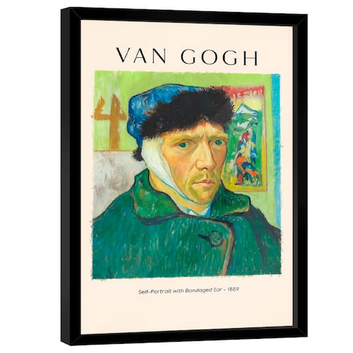 Quadro Decorativo Vang Gogh Self Portrait With Bandaged Ear Moldura Preta e Vidro - 84x54cm -