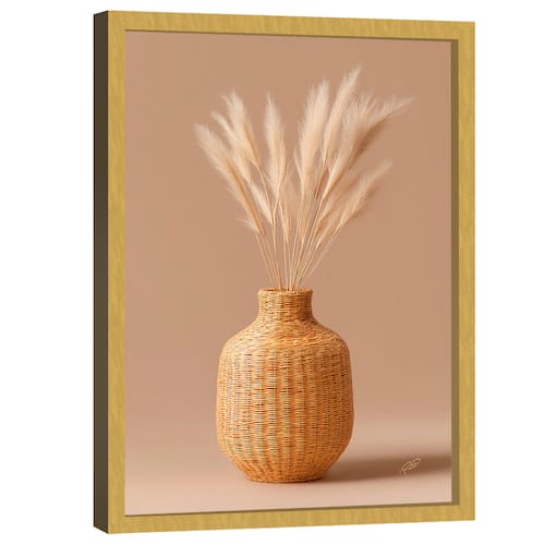 Quadro Decorativo Vaso e Folhas de Trigo Minimalista Moldura Dourada - 60x40cm -