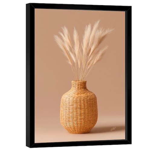 Quadro Decorativo Vaso e Folhas de Trigo Minimalista Moldura Preta - 118x78cm -