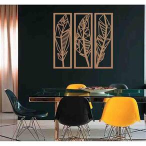 O Quadro Decorativo Vazado Penas irá trazer um toque requintado para o seu ambiente. O quadro é produzido em MDF com 3mm de espessura cortado a laser. Suas bordas na cor preta é feito pela própria máquina de corte a laser, dando o acabamento impecável. O quadro é composto por três peças que juntas formam uma linda imagem. Para deixá-los perfeitos em sua parede deixe um espaço com cerca de 1cm entre uma peça e outra, assim você terá um resultado fantástico. O quadro se encaixa bem em qualquer ambiente, com sofisticação e design, esse quadro é a peça chave para tornar seu lar mais aconchegante.