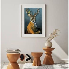 Quadro decorativo veado humano - 60x48cm Moldura: madeira preta Informações do produto tire todas as suas dúvidas no descritivo abaixo: decoração para quarto, sala, cozinha, escritório, área gourmet e muito mais. Chega de paredes vazias medidas - cada peça tem 60x48cm . Material do papel - papel fotográfico brilhante de altíssima resolução acabamento - todos os quadros são acompanhados de vidro para proteção da imagem. - moldura em madeira maciça na cor preta ou branca conforme produto escolhido e pendurador. - paspatur branco com 7cm de largura - os quadros são embalados de forma segura com plástico bolha com camada dupla de acordo com o tamanho dos quadros. Garantia - garantia de 3 meses. Meu quadro chegou. Como posso fixá-lo Você precisa apenas de um martelo e um prego, pois os quadros já vão acompanhados de penduradores. Esta é a forma mais indicada. Como posso limpar meu quadro A limpeza é feita como um móvel comum da sua casa. Apenas um pano seco ou espanador são suficientes para tal