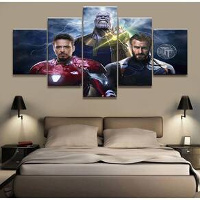 Quadro Decorativo Vingadores G 5 peças 130x65 cm em tecido