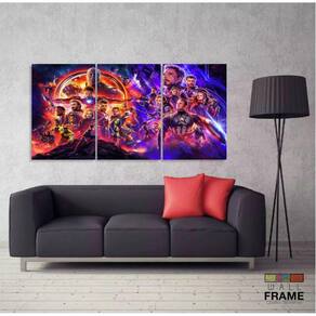 Quadro Decorativo Vingadores Ultimato 3 Peças 130x60 Cm Em T