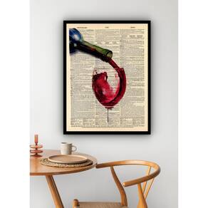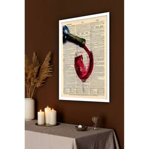 Quadro Decorativo Vinho Caindo Taça Bar Vintage - 70x50cm - Cor: Moldura Branca