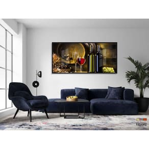 Quadro Decorativo Vinho Torneira Barril 130x60 Moldura Preta 2x2