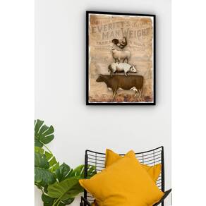 Quadro Decorativo Vintage Animais Fazenda - 70x50cm - Cor: Moldura Branca