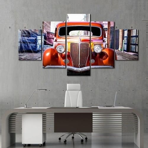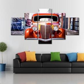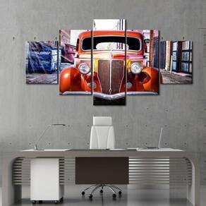 Quadro Decorativo Vintage Carro 5 partes 130x65 em teci