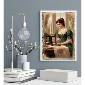 Quadro decorativo vintage costureira 24x18cm - com vidro Moldura: madeira branca Informações do produto tire todas as suas dúvidas no descritivo abaixo: decoração para quarto, sala, cozinha, escritório, área gourmet e muito mais. Chega de paredes vazias medidas - cada peça tem 24x18cm a5 . Material do papel - papel fotográfico brilhante de altíssima resolução acabamento - todos os quadros são acompanhados de vidro para proteção da imagem. - moldura em madeira maciça na cor preta ou branca conforme produto escolhido e pendurador . - os quadros são embalados de forma segura com plástico bolha com camada dupla de acordo com o tamanho dos quadros. Garantia - garantia de 3 meses. Meu quadro chegou. Como posso fixá-lo Você precisa apenas de um martelo e um prego, pois os quadros já vão acompanhados de penduradores. Esta é a forma mais indicada. Como posso limpar meu quadro A limpeza é feita como um móvel comum da sua casa. Apenas um pano seco ou espanador são suficientes para tal Ean: 7899886611713