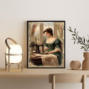 Quadro decorativo vintage costureira 33x24cm