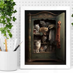 Quadro decorativo vintage gatos no armário 45x34cm Cor: moldura preta Informações do produto tire todas as suas dúvidas no descritivo abaixo: decoração para quarto, sala, cozinha, escritório, área gourmet e muito mais. Chega de paredes vazias. Medidas - cada peça tem 45x34cm a3 . Material do papel - papel fotográfico brilhante de altíssima resolução acabamento - todos os quadros são acompanhados de uma película de acetato para proteção da imagem. - os quadros são embalados de forma segura com plástico bolha com camada dupla de acordo com o tamanho dos quadros. - de 3 meses. Meu quadro chegou. Como posso fixá-lo Você precisa apenas de um martelo e um prego, pois os quadros já vão acompanhados de penduradores. Esta é a forma mais indicada. Caso prefira, você pode utilizar uma fita dupla face neste caso, sugerimos de alta qualidade para evitar que descole e seu quadro caia . Como posso limpar meu quadro A limpeza é feita como um móvel comum da sua casa. Apenas um pano seco ou espanador são suficientes para tal Marca: Não Informado