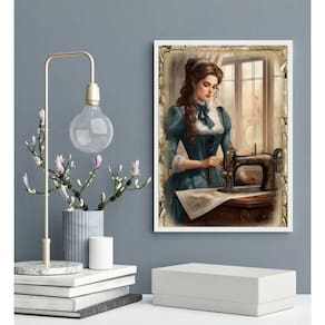 Quadro decorativo vintage mulher costurando 24x18cm - com vidro Moldura: madeira branca Informações do produto tire todas as suas dúvidas no descritivo abaixo: decoração para quarto, sala, cozinha, escritório, área gourmet e muito mais. Chega de paredes vazias medidas - cada peça tem 24x18cm a5 . Material do papel - papel fotográfico brilhante de altíssima resolução acabamento - todos os quadros são acompanhados de vidro para proteção da imagem. - moldura em madeira maciça na cor preta ou branca conforme produto escolhido e pendurador . - os quadros são embalados de forma segura com plástico bolha com camada dupla de acordo com o tamanho dos quadros. Garantia - garantia de 3 meses. Meu quadro chegou. Como posso fixá-lo Você precisa apenas de um martelo e um prego, pois os quadros já vão acompanhados de penduradores. Esta é a forma mais indicada. Como posso limpar meu quadro A limpeza é feita como um móvel comum da sua casa. Apenas um pano seco ou espanador são suficientes para tal Ean: 7896012964910
