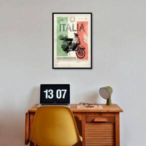 Quadro decorativo vintage vespa itália 45x34cm Moldura: madeira branca Informações do produto tire todas as suas dúvidas no descritivo abaixo: decoração para quarto, sala, cozinha, escritório, área gourmet e muito mais. Chega de paredes vazias. Medidas - cada peça tem 45x34cm a3 . Material do papel - papel fotográfico brilhante de altíssima resolução acabamento - todos os quadros são acompanhados de uma película de acetato para proteção da imagem. - os quadros são embalados de forma segura com plástico bolha com camada dupla de acordo com o tamanho dos quadros. - de 3 meses. Meu quadro chegou. Como posso fixá-lo Você precisa apenas de um martelo e um prego, pois os quadros já vão acompanhados de penduradores. Esta é a forma mais indicada. Caso prefira, você pode utilizar uma fita dupla face neste caso, sugerimos de alta qualidade para evitar que descole e seu quadro caia . Como posso limpar meu quadro A limpeza é feita como um móvel comum da sua casa. Apenas um pano seco ou espanador são suficientes para tal Marca: Não Informado