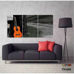 Quadro Decorativo Violão Paisagem Múscia Em Tecido 3 Peças m