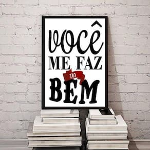 Quadro decorativo você me faz tão bem 33x24cm - com vidro Moldura: madeira preta Informações do produto tire todas as suas dúvidas no descritivo abaixo: decoração para quarto, sala, cozinha, escritório, área gourmet e muito mais. Chega de paredes vazias medidas - cada peça tem 33x24cm a4 . Material do papel - papel fotográfico brilhante de altíssima resolução acabamento - todos os quadros são acompanhados de vidro para proteção da imagem. - moldura em madeira maciça na cor preta ou branca conforme produto escolhido e pendurador . - os quadros são embalados de forma segura com plástico bolha com camada dupla de acordo com o tamanho dos quadros. Garantia - garantia de 3 meses. Meu quadro chegou. Como posso fixá-lo Você precisa apenas de um martelo e um prego, pois os quadros já vão acompanhados de penduradores. Esta é a forma mais indicada. Como posso limpar meu quadro A limpeza é feita como um móvel comum da sua casa. Apenas um pano seco ou espanador são suficientes para tal Ean: 7899839674383