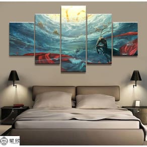 Quadro Decorativo WuKong 5 peças 130x65 cm em tecido
