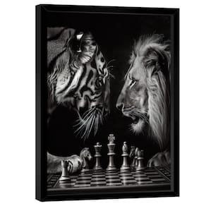 Quadro Decorativo Xadrez Felino Moldura Branca - 84x54cm -
