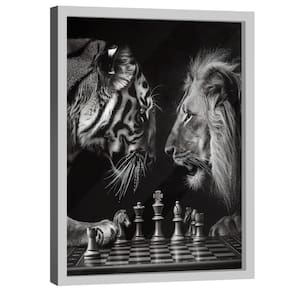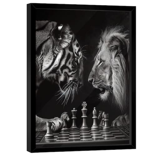 Quadro Decorativo Xadrez Felino Moldura Preta e Vidro - 118x78cm -
