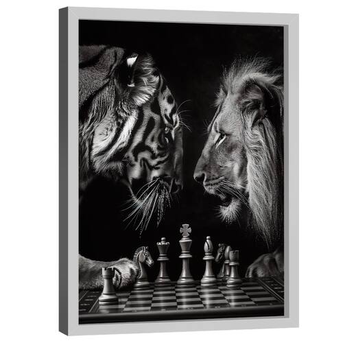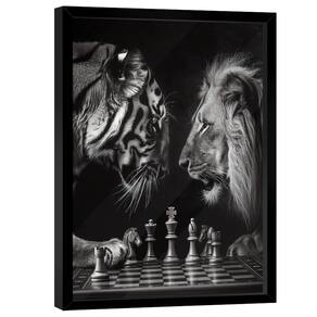 Quadro Decorativo Xadrez Felino Moldura Branca - 150x100cm -